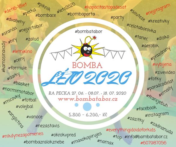 Při zrušení akce BOMBA Léto 2026 ze strany BOMBA tábor – dětské tábory, z. s. nebo vládním nařízením, si vyhrazujeme právo vrátit cenu akce zpět ve lhůtě 6 měsíců ode dne zrušení a to stejným způsobem, jakým byla cena uhrazena.